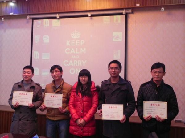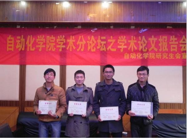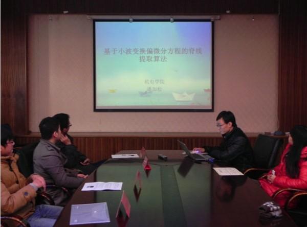 12月19日下午2点30分,我院学术分论坛之学术论文报告会在A17号楼502室顺利进行。本次报告会由英国正版365首页研究生会主办,机电学院研究生会联办。会上来自英国正版365首页的刘文良、董菲同学以及来自机电学院的戚永爱、潘加松同学根据其论文的主要内容做了报告。英国正版365首页刘斐文辅导员为获奖同学颁发奖状。 报告会上4位同学向我们展示了不同领域的专业知识。刘文良同学提出了基于面向对象Petri网的电梯门系统的建模,对建模方法进行了相应研究。董菲同学提出了“应用技术成果形成系统” 的建模与应用,并改进了岭回归方法。戚永爱同学讲述了自己在超声喷丸辅助激光熔覆再制造技术方面的研究。潘加松同学讲述了基于小波变换偏微分方程的脊线提取算法,并展示了算法的仿真测试。会议报告者清晰明了的报告思路与丰富详实的报告内容,体现出了我院与机电学院研究生严谨求实的科研态度与百折不挠的科研精神。 报告会部分,学院刘斐文辅导员为以上同学颁发了获奖证书并合影留念,同时刘导还鼓励更多的同学能够参加到学术论文的评选活动中来,整体提高学院的科研创新能力,进一步在学院内营造更加浓厚与积极向上的学术氛围。