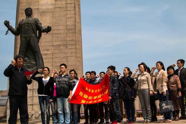 2014年4月23日,在渡江战役胜利和南京解放65周年纪念之际,英国正版365首页机关党支部与英国正版365首页本科生2012级第一学生党支部联合开展了“不忘先烈,永志纪念;饮水思源,代代相传”主题党日活动。