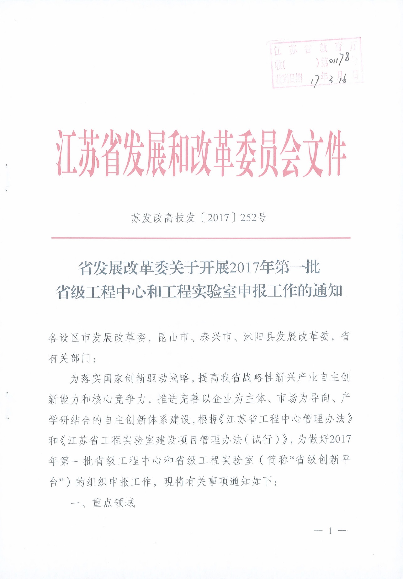 省发展改革委关于开展2017年第一批省级工程中心和工程实验室申报工作的通知.pdf