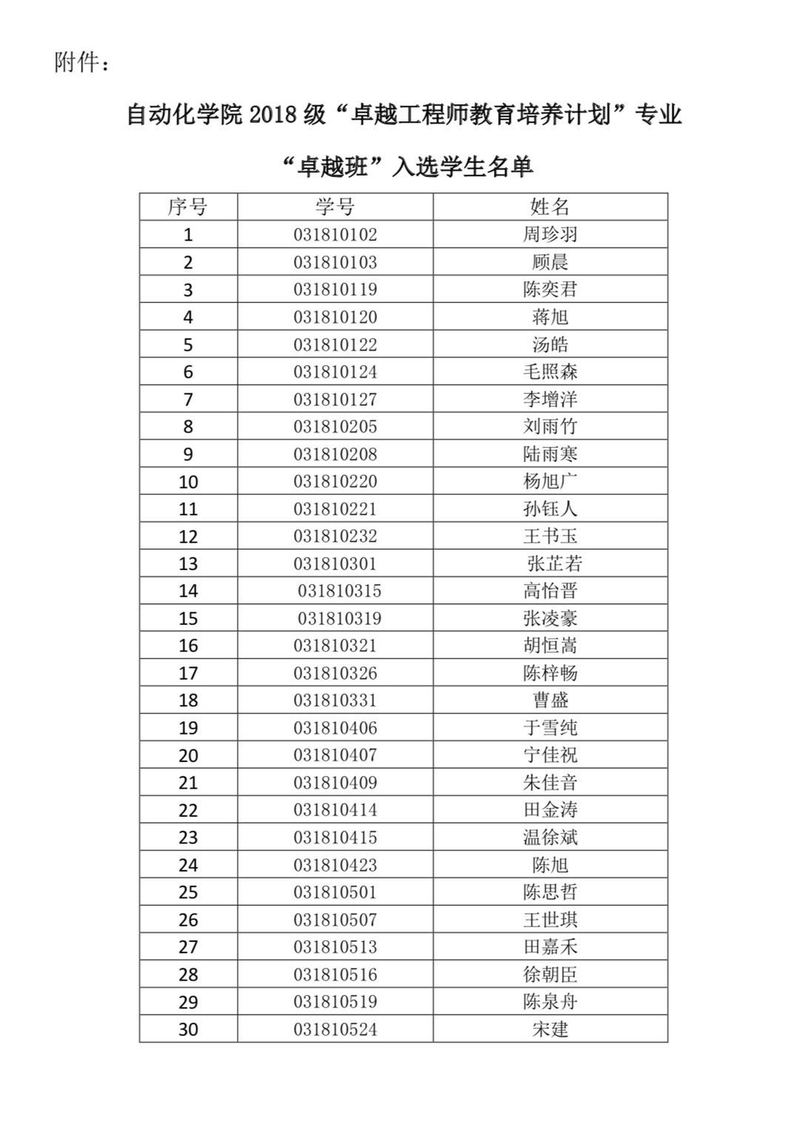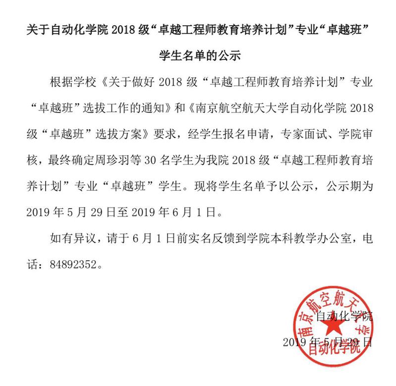 关于英国正版365首页2018级“卓越工程师教育培养计划”专业“卓越班”学生名单的公示